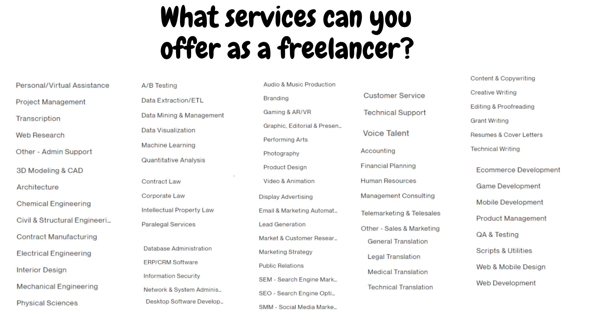 Services you can offer as a beginner GVA